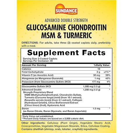 Sản phẩm Sundance Glucosamine Chondroitin MSM and Turmeric | 60 Caplets | Double Strength | Non-GMO and Gluten Free Supplement đang được bán với giá ưu đãi là $8.8835 tại nước Mỹ.