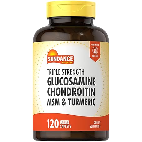 • Sundance Glucosamine Chondroitin with MSM and Turmeric | 120 Caplets | Triple Strength Formula | Non-GMO & Gluten Free Supplement