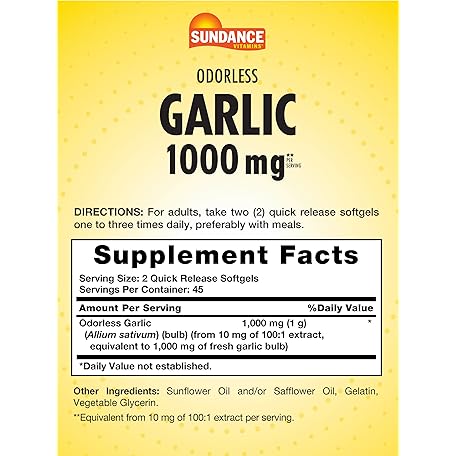 Sản phẩm Sundance Odorless Garlic Softgels | 1000mg | 90 Count | Non-GMO and Gluten Free Supplement đang được bán với giá ưu đãi là $12.6658 tại nước Mỹ.