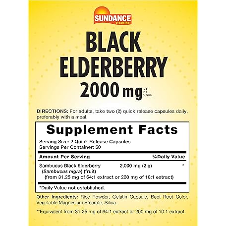 Sản phẩm Sundance Sambucus Black Elderberry Capsules | 2000mg | 100 Count | Non-GMO and Gluten Free Supplement đang được bán với giá ưu đãi là $9.2541 tại nước Mỹ.