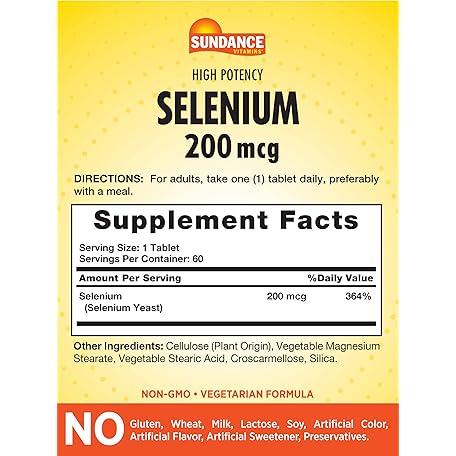 Thông tin sản phẩm Sundance Selenium 200mcg | 60 Tablets | High Potency Formula | Vegetarian, Non-GMO, and Gluten Free Essential Mineral Supplement