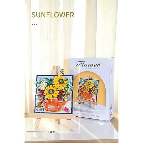 Sunflower Building Blocks for Kit for Adult, Mini Micro Blocks Set and Display Model for Home or Office, Idea Birthday Present and Game for Teens