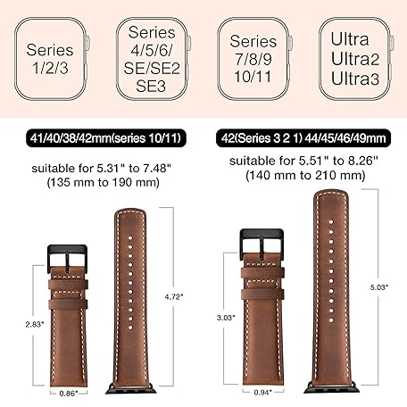 Sản phẩm SUNFWR Leather Bands Compatible with Apple Watch Band 42mm(Series 3 2 1) 44mm 45mm 46mm 49mm for Unisex, Replacement Strap for iWatch Ultra 2, Ultra, SE2, SE, Series 10 9 8 7 6 5 4 3 2 1 đang được bán với giá ưu đãi là $9.2759 tại nước Mỹ.