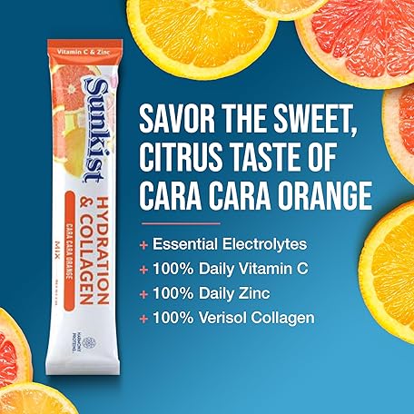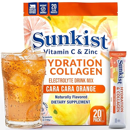 Sản phẩm Sunkist Hydration & Collagen Cara Cara Orange Electrolyte Powder Drink Mix (20 Sticks), with Collagen Peptides, Vitamin C & Zinc, Just Add Water, by The Frozen Bean đang được bán với giá ưu đãi là $30.5091 tại nước Mỹ.