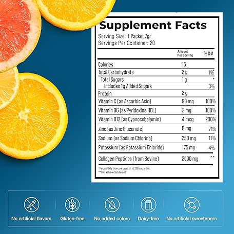 Thông tin sản phẩm Sunkist Hydration & Collagen Cara Cara Orange Electrolyte Powder Drink Mix (20 Sticks), with Collagen Peptides, Vitamin C & Zinc, Just Add Water, by The Frozen Bean