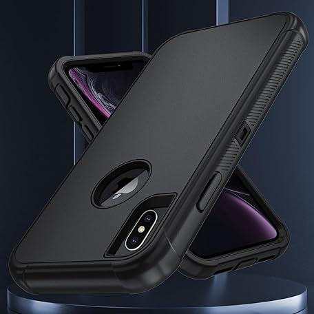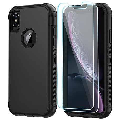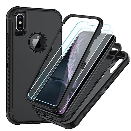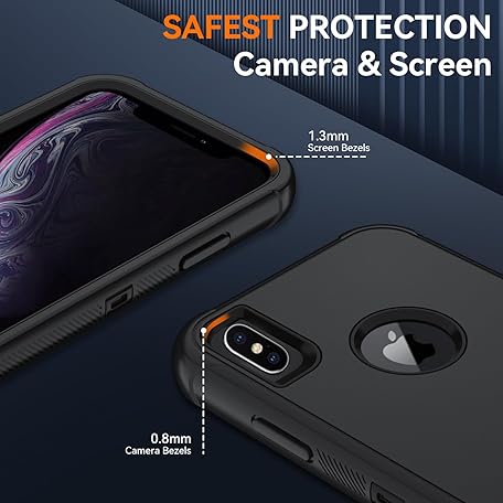 SunStory Compatible with iPhone Xs Max Case with HD Screen Protector, 3-Layer Heavy Duty Full-Body Cover,3 in 1 Hybrid Protective Case for iPhone Xs Max 6.5", Black