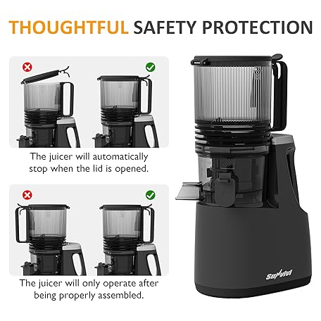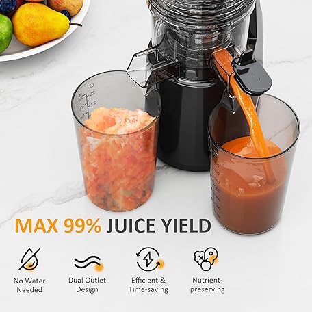 SUNVIVI Cold Press Juicer with 5.9" Wide Feed Chute, 250W Slow Masticating Juicer Machines Fit Whole Vegetables & Fruits, Easy to Clean, Dual-Layer Strainer, High Yield Juicer for Home, Black