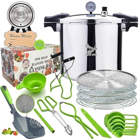 Supa Ant Pressure Canner 23 Qt with Canning Supplies Starter Kit - Canning Pressure Cooker with Gauge - Water Bath Canner Pot with Rack and Lid - Jar Lifter, XL Ladle, Jar Tongs, and Bubble Popper