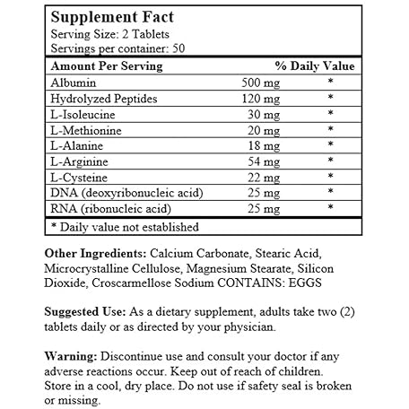 • Super Albumin – Hydrolyzed Protein & Amino Acids Supplement | 100 Tablets | Supports Tissue Repair, Cellular Health & Physiological Balance