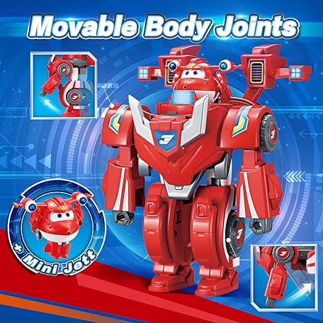 Thông tin sản phẩm Super Wings Transformable Toys, 7" Super Robot and 2" Mini Jett Transforming Suit, 2 in 1 Racing Car-Robot Action Figure for Boys and Girls Age 3+, Gifts for Preschool Kids, Red