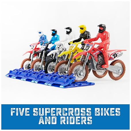 Thông tin sản phẩm Supercross, Authentic 5-Pack of 1:24 Scale Die-Cast Motorcycles with Rider Figure, Toy Moto Bike for Kids and Collectors Ages 3 and up