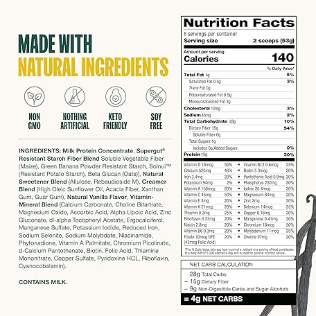 • Supergut GLP-1 Boosting Prebiotic Shakes, Vanilla – Gut Healthy Meal Replacement with 15g Fiber, 15g Protein & 5g Net Carbs - Keto Friendly - 8 Servings