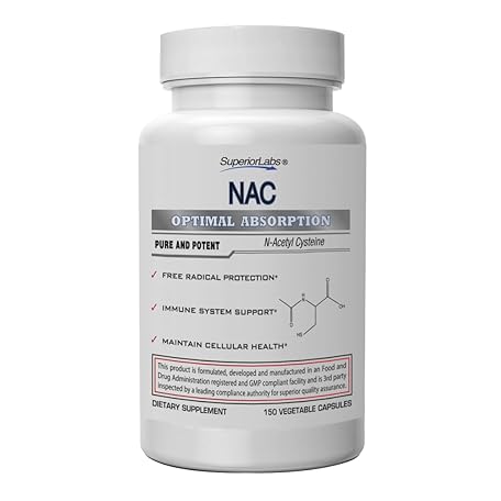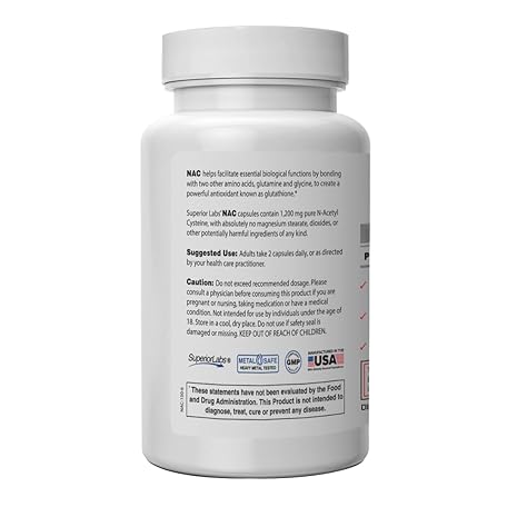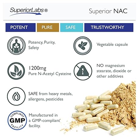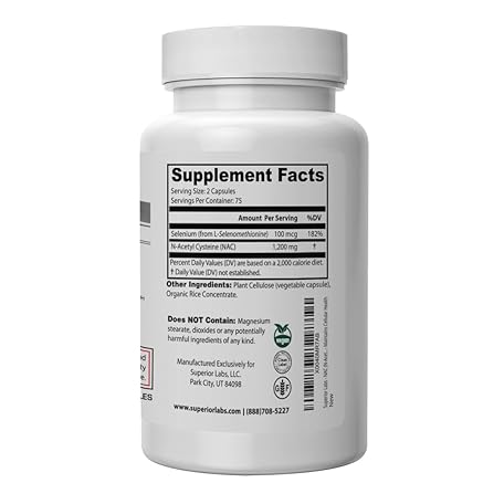 Thông tin sản phẩm Superior Labs NAC (N-Acetyl Cysteine) 1,200mg, 150 Vegetable Capsules, Dietary Supplement with Selenium, Free Radical Protection, Normal Immune System Function, Maintains Cellular Health
