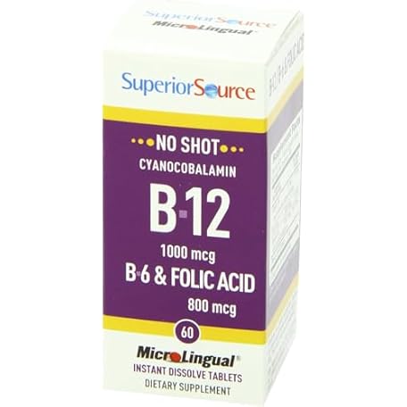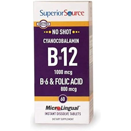 Sản phẩm Superior Source No Shot Vitamin B-12 Cyanocobalamin 1000 mcg, B-6, Folic Acid 800 mcg - Support Brain & Heart Health - Aids Natural Energy Levels - 60 Sublingual Dissolving Tablets đang được bán với giá ưu đãi là $10.8891 tại nước Mỹ.