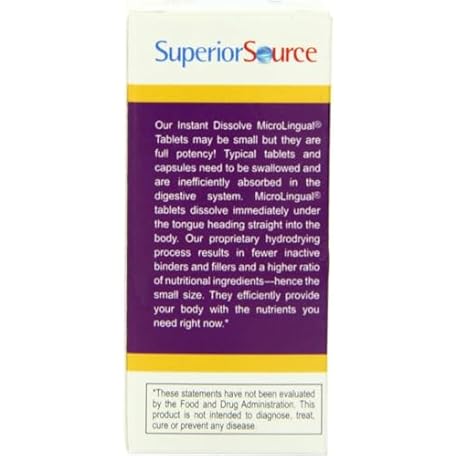 Thông tin sản phẩm Superior Source No Shot Vitamin B-12 Cyanocobalamin 1000 mcg, B-6, Folic Acid 800 mcg - Support Brain & Heart Health - Aids Natural Energy Levels - 60 Sublingual Dissolving Tablets