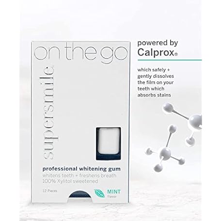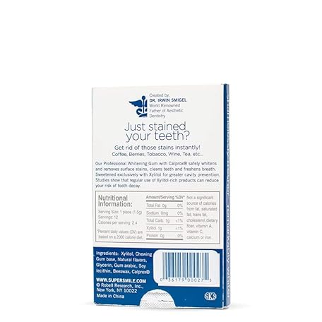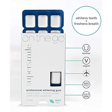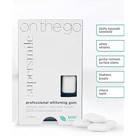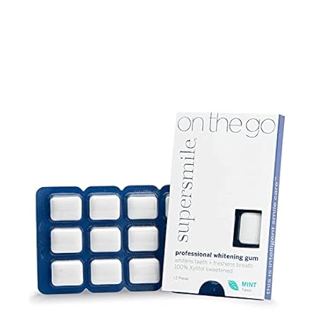 • Supersmile Professional Teeth Whitening Gum – 100% Xylitol Sweetened Formula Removes Stains from Coffee – Sugar Free, Vegan, Kosher, 12 Count