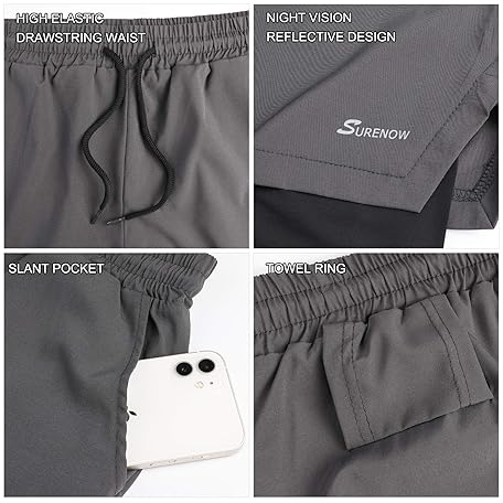 Thương hiệu Surenow là cái tên nổi tiếng được rất nhiều khách hàng trên thế giới chọn lựa. Với kiểu dáng đẹp mắt, sang trọng, sản phẩm Surenow Mens 2 in 1 Running Shorts Quick Dry Athletic Shorts with Liner, Workout Shorts with Zip Pockets and Towel Loop là sự lựa chọn hoàn hảo nếu bạn đang tìm mua một món cho riêng mình.