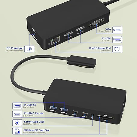 Thông tin sản phẩm Surface Dock, 12-in-1 Triple Display (2 HDMI 4K+VGA) Surface Dock, Surface Docking Station for Surface Pro 11/10/9/8/X/7/6/5/4/3, Surface Book 3/2/1, Surface Laptop go/7/6/5/4/3/2/1