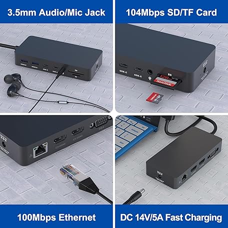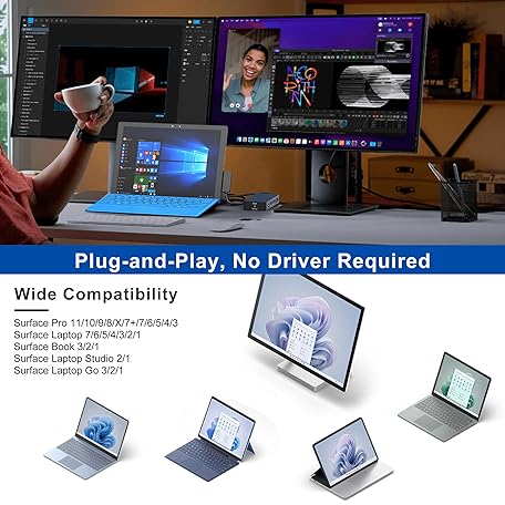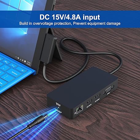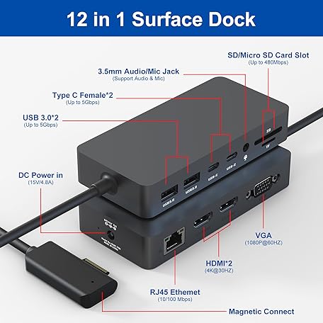 Thông tin sản phẩm Surface Pro Docking Station Triple Displays with Power Supply, 12 in 1 Surface Dock Station with Dual 4K HDMI+VGA for Surface Pro 11/10/9/8/X/7/6/5/4/3, Surface Laptop 7/6/5/4/3/2/1,Surface Book