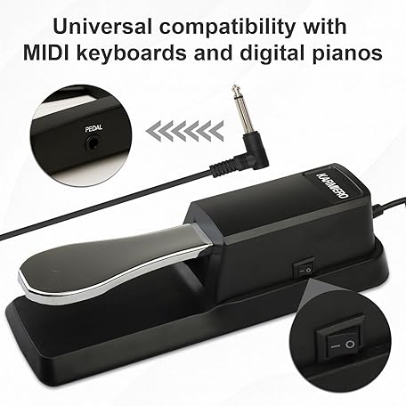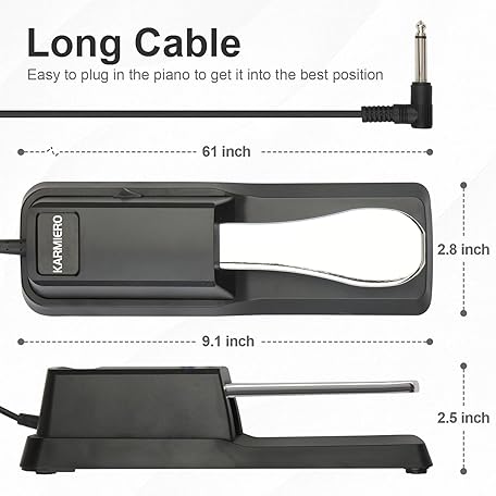Sustain Pedal for Keyboard Universal, Premium Sustain Pedal, Piano Pedal for Keyboard with Polarity Switch for MIDI Keyboards, Digital Pianos, Yamaha, Casio and More, 1/4'' Input Plug by karmiero