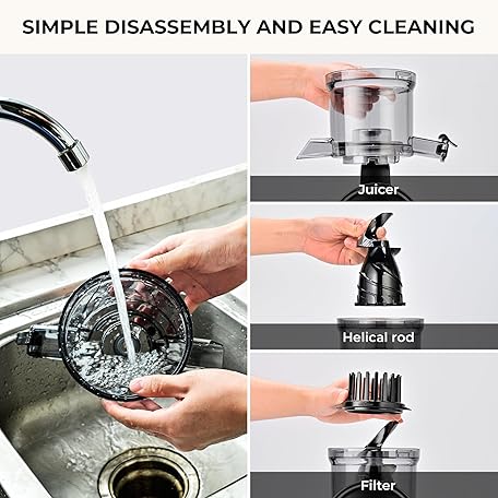SUSTEAS Cold Press Juicer, 300W, 5.3" Large Feed Chute, 1.5L Capacity, Automatic Feeding, High Yield, Easy to Clean, Ideal for Whole Fruits & Vegetables, Black