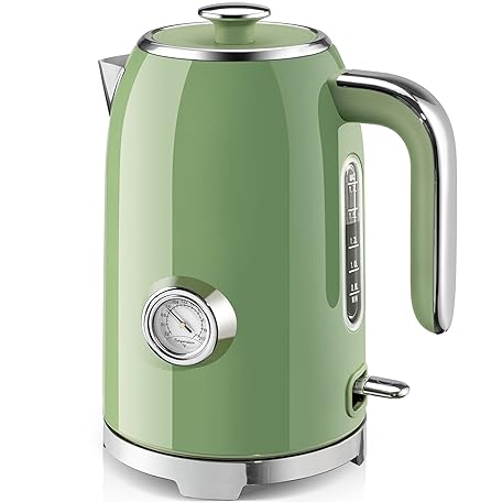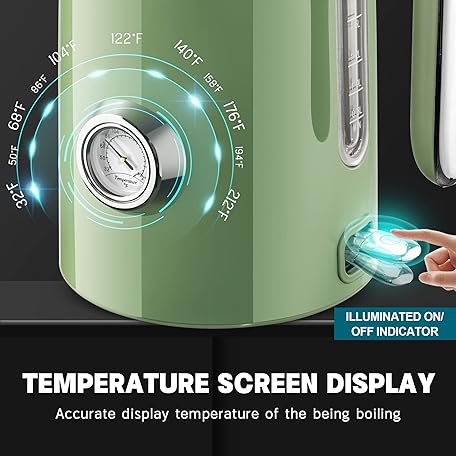 Thông tin sản phẩm SUSTEAS Electric Kettle - 57oz Hot Tea Water Boiler with Thermometer, 1500W Fast Heating Stainless Steel Pot, Cordless LED Indicator, Auto Shut-Off & Boil Dry Protection, Retro Green