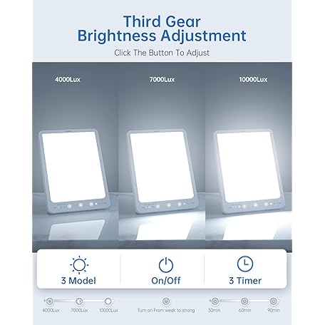 Thông tin sản phẩm SUXIO Light Therapy Lamp - 10000 Lux Therapy Lights, 3 Timing & Mode Happy Lamp, Touch Control Daylight Lamp with Memory Function, Portable Light Therapy Box for Home/Office Use As Lift Mood