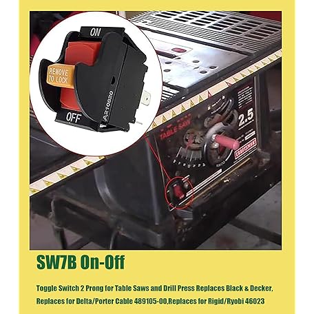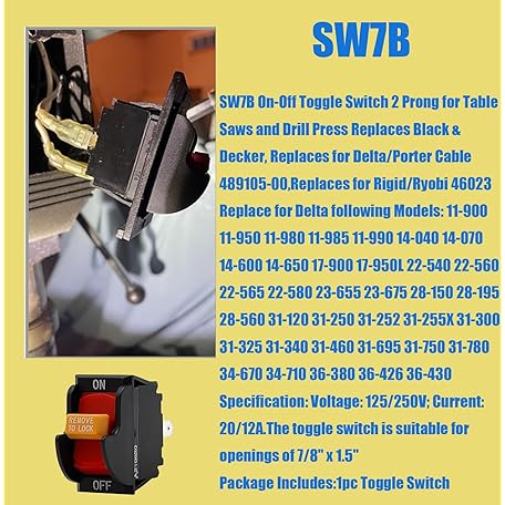 Thông tin sản phẩm SW7B On-Off Toggle Switch 2 Prong ,Replacment for Delta,Aftermarket Replacment for Ryobi 46023 Delta/Porter Cable 489105-00 438010170141, for Table Saws Drill Press Power Tools Planer Band Saw