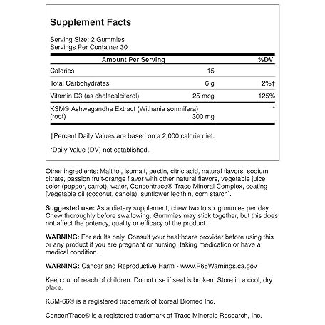 Swanson ASHWAGANDHA & VIT D Pass FRT 60 GMMY