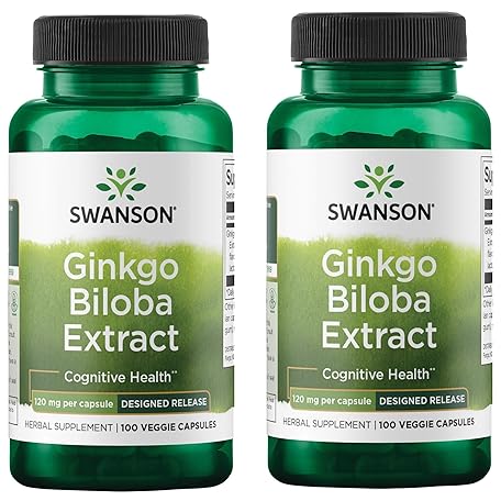 Swanson Ginkgo Biloba Extract Standardized Delayed-Release Memory Brain Cognitive Function Health Supplement 120 mg (24% flavone glycosides, 6% Terpene lactones) 100 Veggie Drcaps (2 Pack)