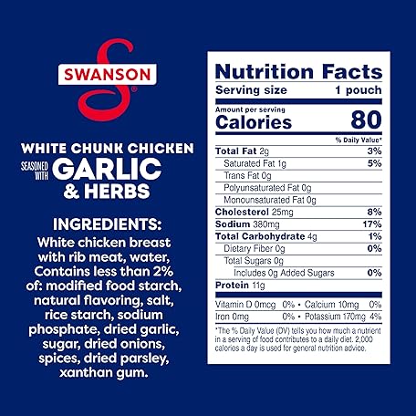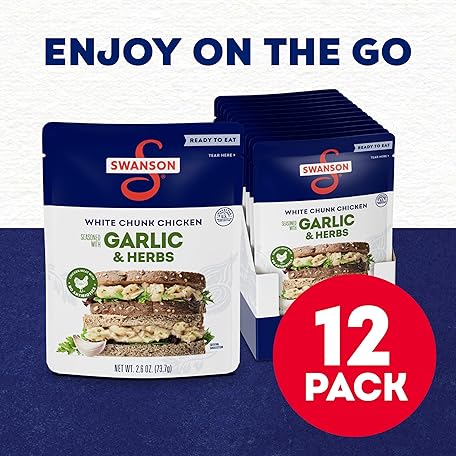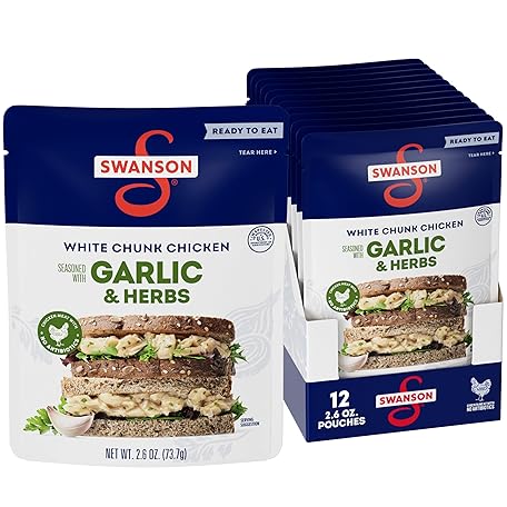 Thông tin sản phẩm SWANSON S Garlic and Herbs White Chunk Fully Cooked Chicken, Ready to Eat, Simple On-the-Go Meals, 2.6 OZ Pouch (Case of 12)