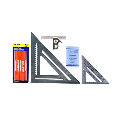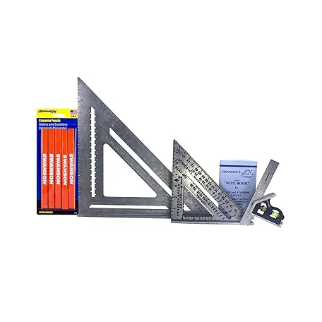 Thông tin sản phẩm Swanson Tool Co 5-Piece Value Pack Featruing the S0101 Speed Square with Blue Book, the T0108 12 inch Speed Square w plain markings, the TC130 6 inch Combo Square and the CP700 Carpenter Pencils