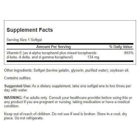 Sản phẩm Swanson Vitamin E Mixed Tocopherols 200 Iu (134 Milligrams) 100 Sgels đang được bán với giá ưu đãi là $11.2161 tại nước Mỹ.