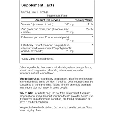 Sản phẩm Swanson Zinc & C Lozenges w/Elderberry & Echinacea-Orange & Lemon Flavor 200 Fl Oz đang được bán với giá ưu đãi là $15.8159 tại nước Mỹ.