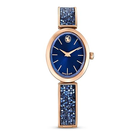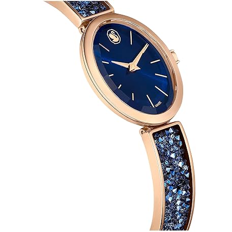 Thông tin sản phẩm Swarovski Crystal Rock Oval Watch, Metal Bracelet, Blue, Rose Gold-Tone Finish, Swiss Made, Part of The Crystal Rock Watch Collection