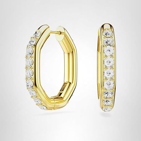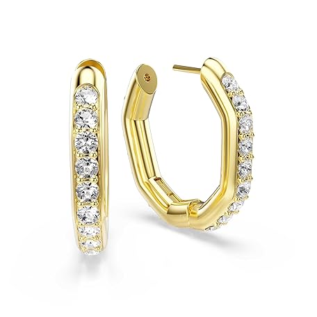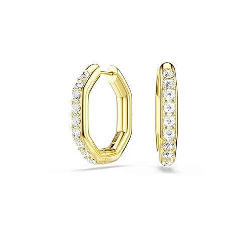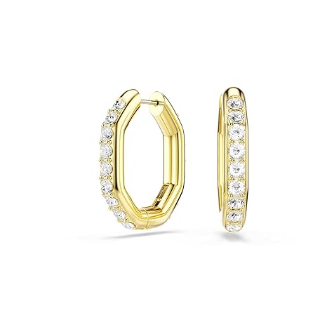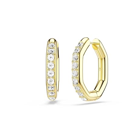Swarovski Dextera hoop earrings, Octagon shape, Round cut, White, Gold-tone Finish