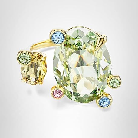 Swarovski Gema open ring, Mixed cuts, Multicolored, Gold-tone finish
