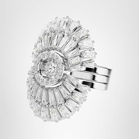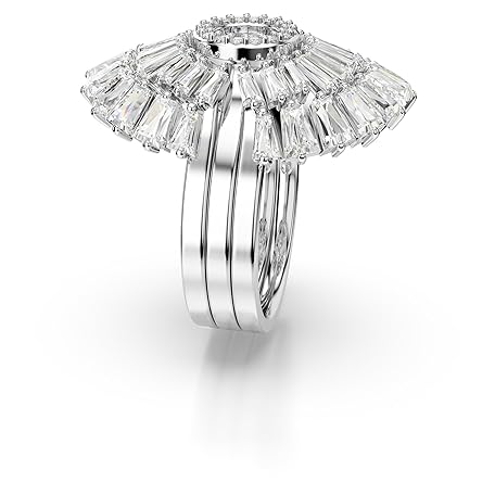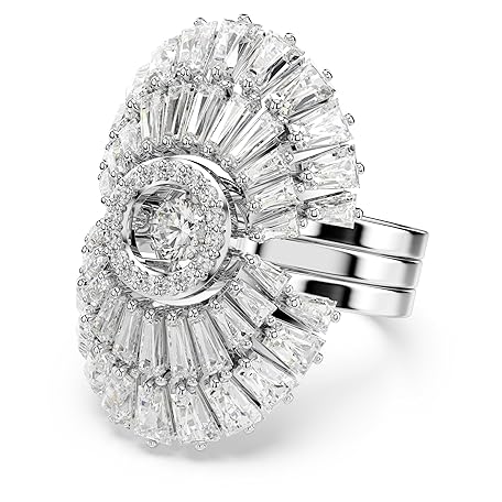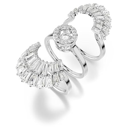 Swarovski Idyllia 3-Piece Ring Set, Mixed Cut Crystals, Shell Motif, Rhdoium Finished Metal