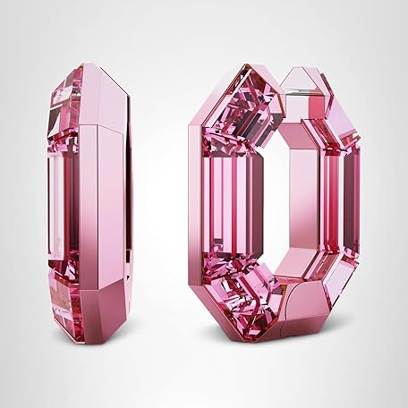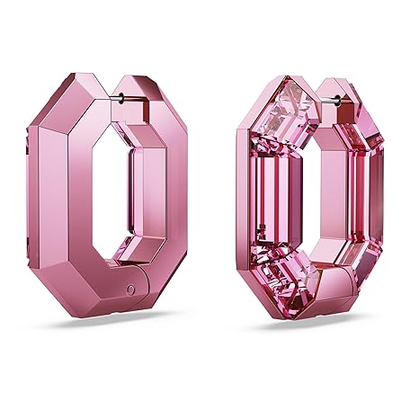 Swarovski Lucent Small Hoop Earrings, Pink Octagon-Shaped Crystals, Part of the Swarovski Lucent Collection
