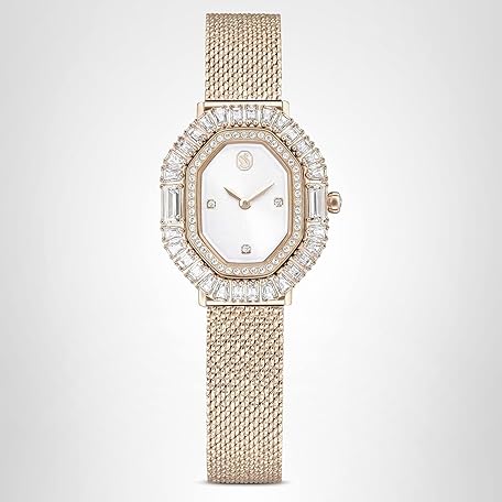 Swarovski Matrix Octagon Watch, Swiss Made, Clear Crystals, Gold-Tone, Stainless Steel Finishes