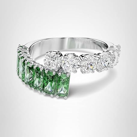 • Swarovski Matrix Ring, Mixed Cuts, Green Crystals, Rhodium Finish