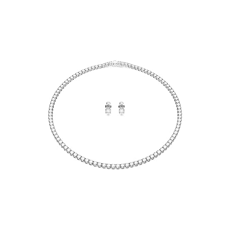Thông tin sản phẩm Swarovski Matrix Tennis Jewelry Set, All-Round Necklace and Pierced Stud Earrings with Clear Crystals on a Rhodium Finished Setting, Part of the Matrix Tennis Collection