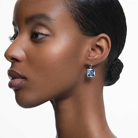Thông tin sản phẩm Swarovski Millenia Earrings, Square cut crystal, Blue, Rhodium plated
