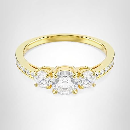 Swarovski Stilla Attract ring, Round cut, White, Gold-tone plated