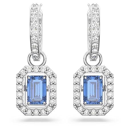 Thông tin sản phẩm Swarovski Una Earrings, Octagon cut Swarovski Zirconia, Blue, Rhodium Finish