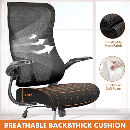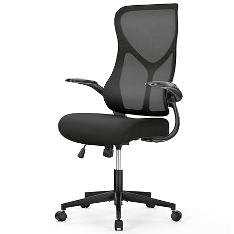 Thông tin sản phẩm Sweetcrispy Ergonomic Office Desk Computer Chair, Comfy High Back Swivel Rolling Home Mesh Gaming Chairs with Wheels, Lumbar Support, Flip-up Arms,for Bedroom, Study, Work, Classic Black