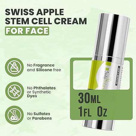 Thông tin sản phẩm Swiss Botany Swiss Apple Stem Cell Cream for Face – Apple Stem Cell 3000 | Plant Stem Cell to Reduce All signs of Aging, Wrinkles, Discoloration, Restore Elasticity and Youthful Appearance, 1Fl Oz