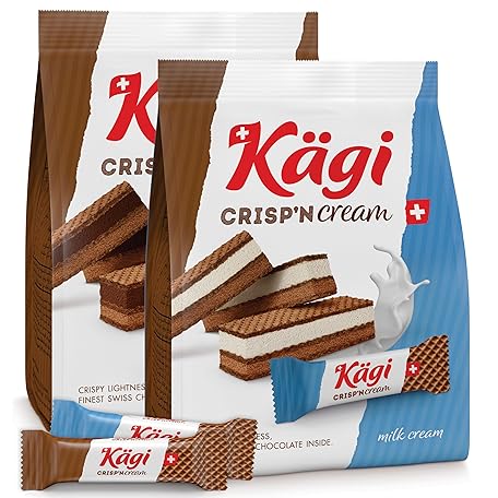 Swiss Milk Chocolate Mousse Filled Wafers by Kägi, Individually Wrapped Snacks, Chocolate Gift, Kägi Crisp'n Cream, Variety Pack, Milk Cream and Choco Cream, 2-Pack, 88g Bags
