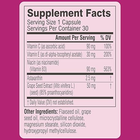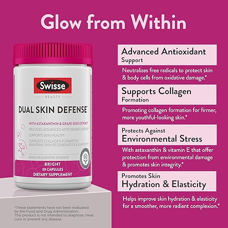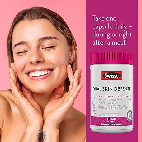 Thông tin sản phẩm Swisse Beauty Dual Skin Defense Supplement | Astaxanthin, Grape Seed Extract, and Vitamin C | Supports Collagen Formation, Skin Elasticity, Antioxidant Protection & Regeneration | 30 Capsules