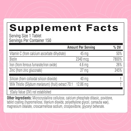 Thông tin sản phẩm Swisse Biotin Hair Skin and Nails Supplement for Women & Men |5 Months Supply| Milk Thistle, Biotin, Vitamin C, Zinc & Iron| Supports Hair Growth &Collagen Production |Collagen Supplement| 150 Tablets